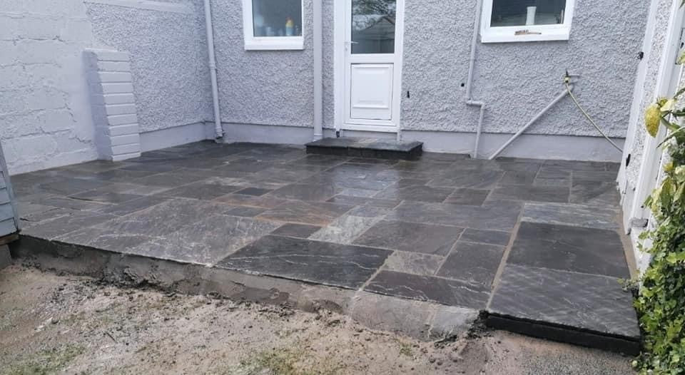 Imported from overseas, Cider Black Sandstone Paving is a versatile and attractive material that showcases a range of colours from light grey and blue tones to deeper shades of brown, grey, and black. When wet, the paving appears very dark, but it lightens when dry, providing a dynamic and changing aesthetic to your outdoor space. The tumbled finish and calibrated thickness make it a durable and appealing choice for various landscaping projects.