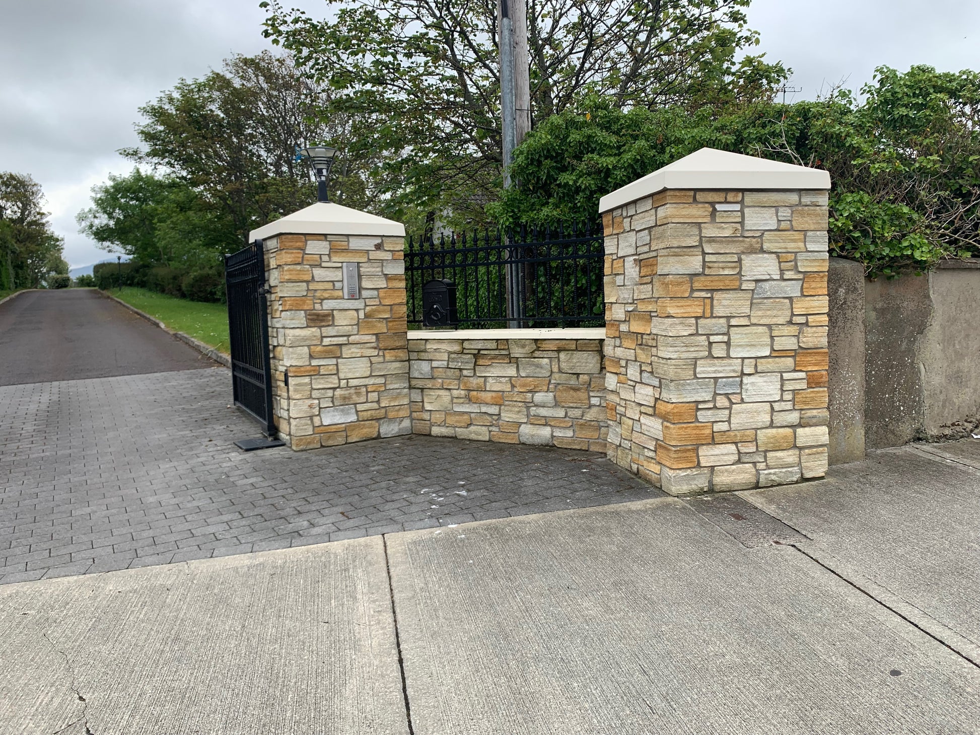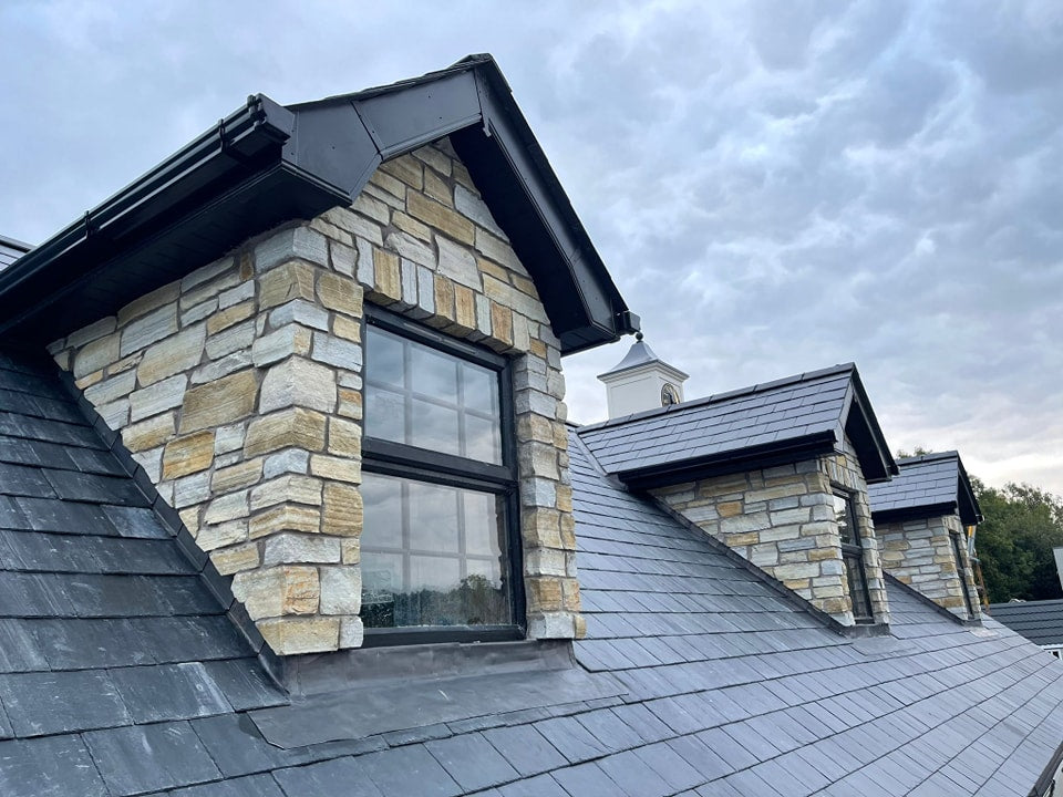 McMonagle Stoneer offers a modern and efficient solution for cladding. Our Gold Donegal Quartzite Stoneer, cut to a thickness of 30mm, combines ease of installation with a lightweight design. Available in flat pieces and matching corners, this cladding provides the authentic appearance of 'full thickness' stone while accommodating homes with space or thickness limitations.
